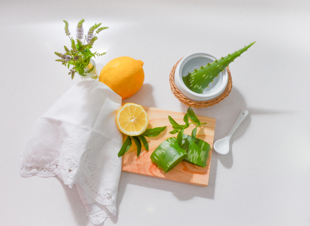 Für das zweite Rezept benötigt werden, aber der Saft von einer halben Zitrone, ein bisschen ‚von warmem Wasser und zwei Teelöffel Bikarbonat. Stir, aufgetragen auf Haut und Haar, lassen für 30 Minuten und spülen.