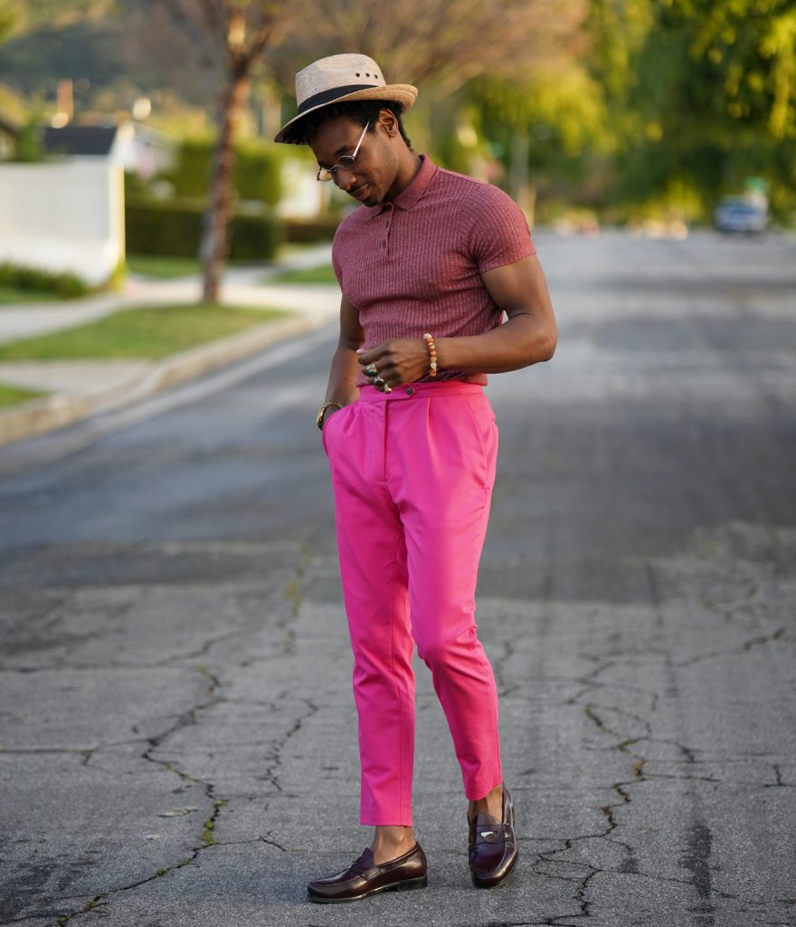 Rosa Strickjacken und Hosen: Der neueste Trend für den 2020 Mann