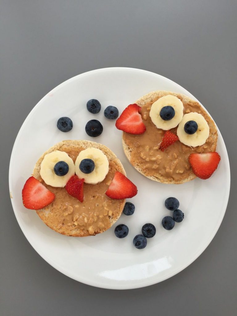 Toast, Erdnussbutter und Früchte. Einfach, schnell und lustig!