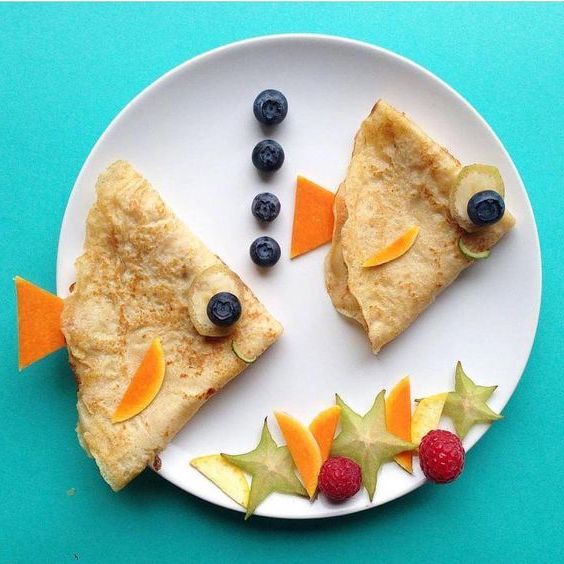 Crêpes Fish gehen einen Spaziergang für das Gericht ... mit ihren unwiderstehlichen Blaubeerblasen.