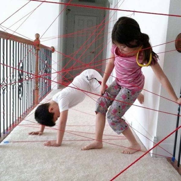Verwenden Sie Scotte, farbige Karten, Kissen und andere Gegenstände (sicher), um den Pfad auf dem Boden zu begrenzen! Füllen Sie den Korridor von Threads, um es zu überwinden, jedoch ohne Berührung. Zeichnen Sie eine gerade Linie, um ein Mandarin in Balance auf einem Löffel zu halten, ohne einen Punkt des Hauses mit verbundenen Augen mit verbundenen Augen und nur die Richtungen Ihres Teamkollegs zu verfolgen. Seien Sie kreativ beim Erfinden von Schwierigkeiten ... Spaß ist garantiert!