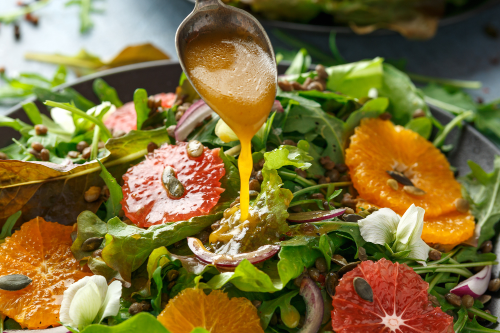 Manche Leute lieben ein bisschen Süße in ihrem Salat, ohne Obst hinzufügen zu müssen. Die Lösung ist Honig oder Agave, was eine Prise natürlicher Süße im Vergleich zu Inhaltsstoffen und Honiggeschmackskäse hinzufügt. Es kann auch lecker sein, die Walnüsse im Honig zu stecken, und der Geschmack der letzteren ist von Zitrusfrüchten gut gebrochen. Sie können die Idee in Betracht ziehen, eine Honig- oder Zitrone-Vinaigrette zu machen, um eine bestimmte und sapide Freude zu haben.