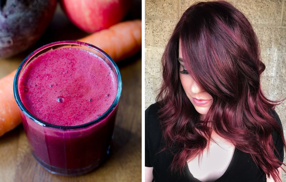 Die Rübe ist eine jener natürlichen Farbstoffen gilt für beide blass Haare dunkle. Um den Rote-Bete erstellen Farbton Sie eine halbe Tasse frischen Rüben-Saft mit 1 Esslöffel Kokosöl gemischt werden müssen. Wenden Sie die Mischung auf die Haare, wickeln sie und für ca. 50-60 Minuten warten. Am Ende sollen Sie eine schöne lilae Tönung erhalten, wenn das Haar dunkel ist, eine helle Magenta Tönung, wenn das Haar leichter ist.
