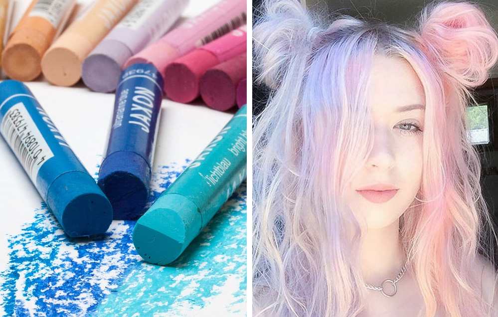 Färben Sie Ihre Haare mit Pastellen ist ganz einfach: Sie müssen nur die Farben wählen, die Sie verwenden möchten. Nehmen Sie einen Stift, mettetene ein Ende in das Wasser, bis es wie ein Teig weich wird, und begann auf die Haare zu reiben es. Die Farbe wird sehr hell sein, aber die Zeichenstifte sie waschen sehr schnell.