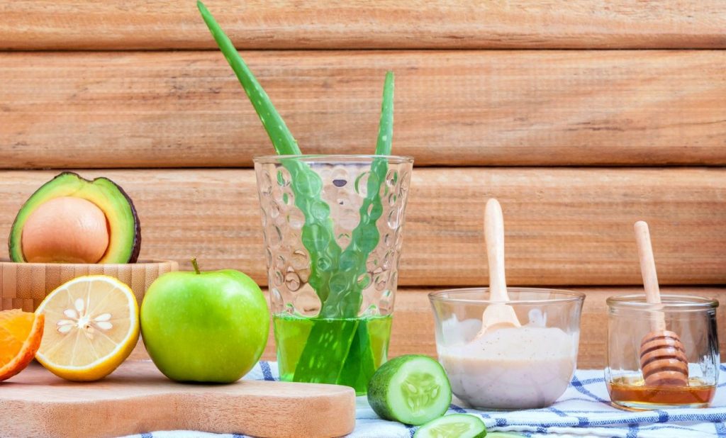 Nimm den Zellstoff eines Aloe-Blattes. Fügen Sie ein paar Tropfen Zitrone hinzu und massieren Sie den Teig sanft auf dem Gesicht. Gründlich mit warmem Wasser spülen. Sie werden eine gereinigte Haut haben und das ganze Jahr über feuchtigkeitsfroh sein.