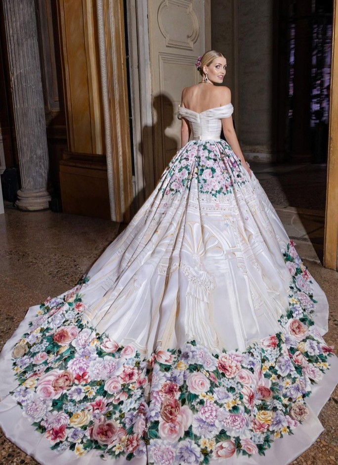 Die Kleidung, die von Kitty während ihrer Ehe getragen wird, ist nichts von Fabelhaft und alles gemacht, was Dolce & Gabbana gemacht hat. Und es ist kein Fall! Kitty ist der globale Hochmode-Botschafter des Hauses, und für ihre Ehe kann es nur ihre Kleidung tragen. Von einem eleganten florentinischen Tier für Spaziergänge, ein blaues Tüllkleid mit gestickten Blumen-Kreuzstich, Kleid in der weißen Spitze viktorianisch inspiriert, mit wem sie zum Altar kam. Blumenkleider, sinnlich, Licht und Geschenke. Eine wahre Parade von hoher Mode.