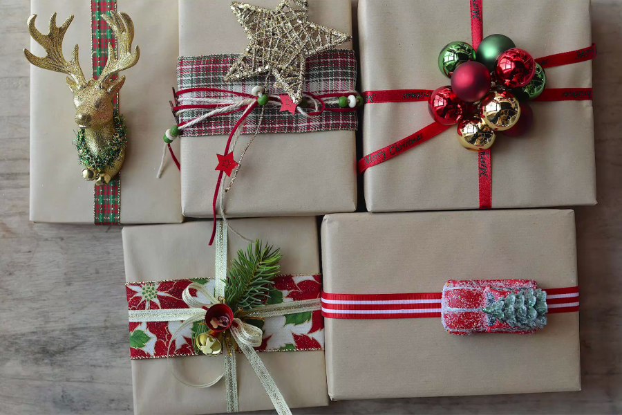 Und die Geschenke sind nicht anders! Wenn Sie aus einem bestimmten Grund oder in diesem Jahr keine Gaben hätten, geben Sie die Freude nicht auf, das Haus voller bunter und lustiger Pakete zu sehen. Nehmen Sie die leeren Felder aller Formen und Größen, schmücken Sie sie entsprechend Ihrer Fantasie und ordnen Sie sie um den Weihnachtsbaum oder in strategischen Punkten des Hauses.