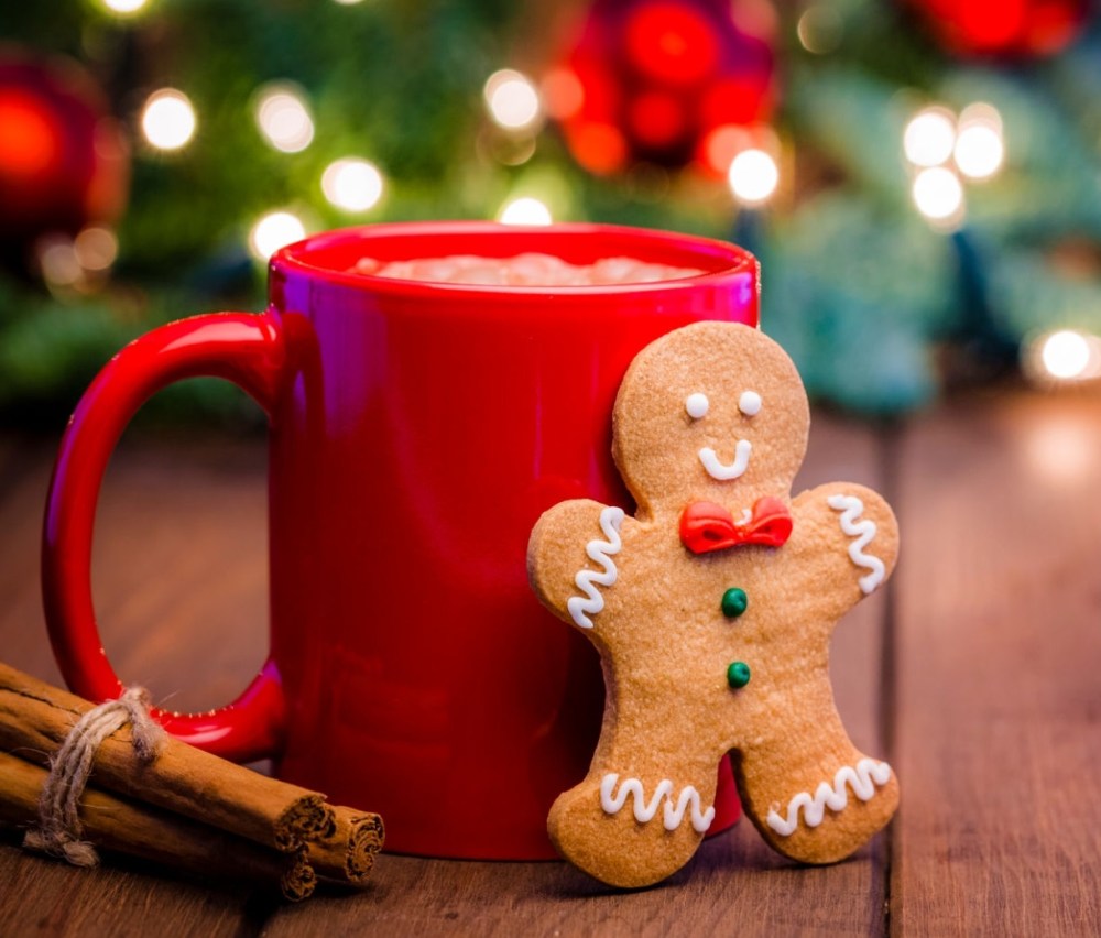 Eine schöne Tasse heiße Schokolade mit einem Lebkuchen-Keks ist ein warmer, perfekter Winter-Snack. Was könnte mehr christmassy sein?
