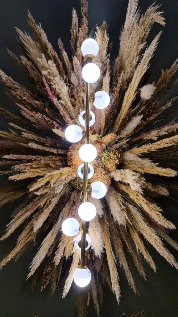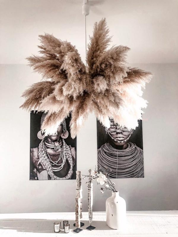 Mit den Pampas-Gras können Blüten Haus Kronleuchter machen! Ja, du hast das richtig gelesen. Einzigartige Kronleuchter, die Form und die Größe, die am besten zu Ihrer Umgebung oder der Tabelle passen, auf der Sie sie installieren möchten. Der Effekt? Es wird ein ausgefeiltes Ambiente schaffen, klassisch und absolut umweltfreundlich!