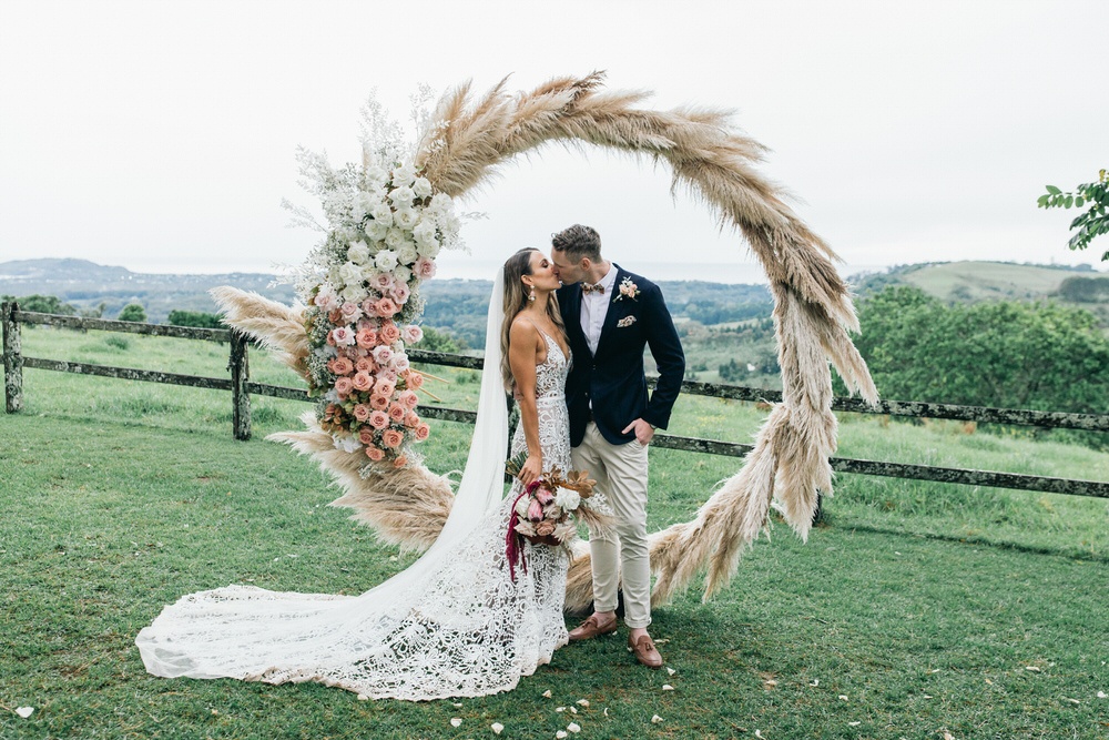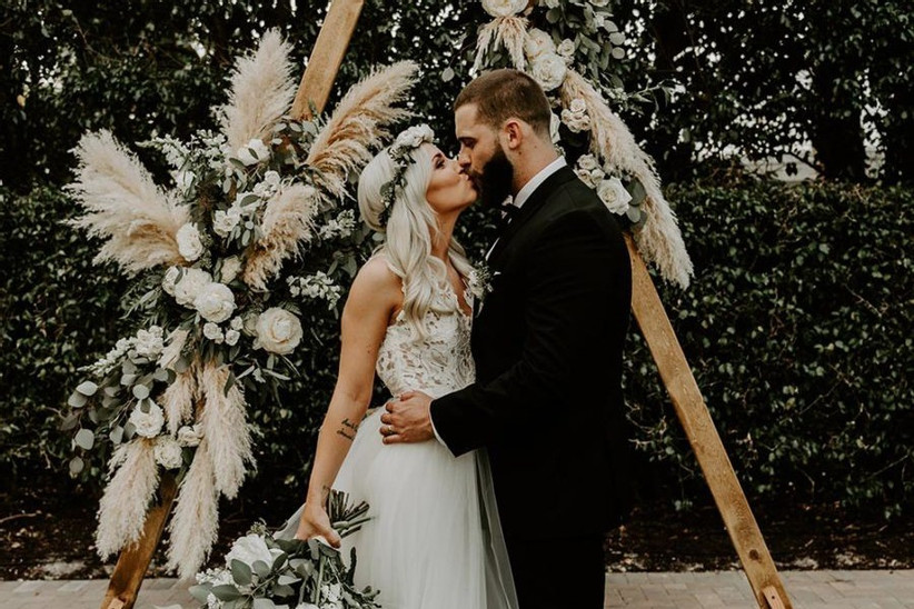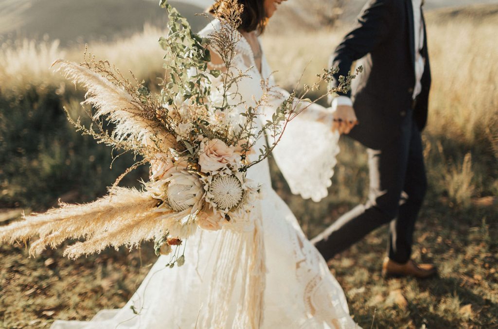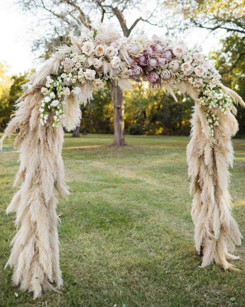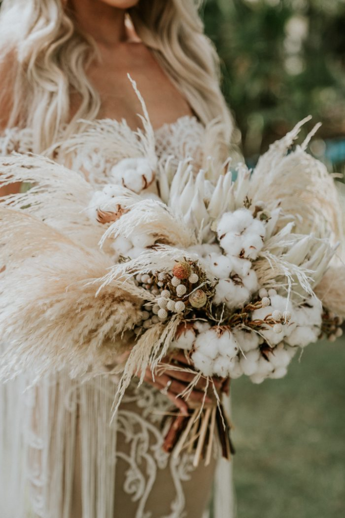 Viele Bräute wählen Blumen gefiederte Pampas auch für ihre Blumensträuße. Eine ursprüngliche Idee, die es an ihrem besten Tag noch originell macht.