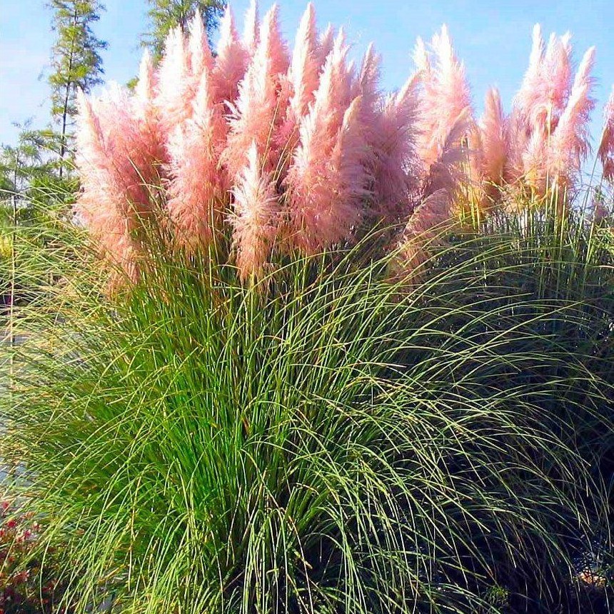 Die Cortaderia ist in Lateinamerika heimisch und gehört zur Rasenfamilie. Es hat eine buschige Angewohnheit und kann die beeindruckende Höhe von zwei Metern erreichen. Seine Blätter in Form von langen starren Bändern sind auf halbem Weg zwischen Grau und Grün, aber nicht von ihrer Schönheit täuschen! Sie können so scharf wie Rasierer sein.