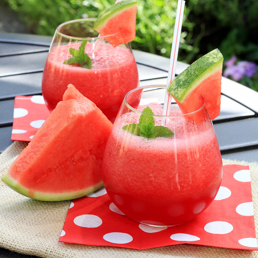 Für Ihren Wassermelonensaft brauchen Sie nichts anderes als Wassermelone! Mit 500 g Früchten (ohne Peel) haben Sie etwa zwei Gläser Saft. Seine sehr hohe Wassermenge gibt Ihnen ein sehr angenehmes Gefühl der Frische, mit einer fast nicht vorhandenen Kalorienzufuhr!