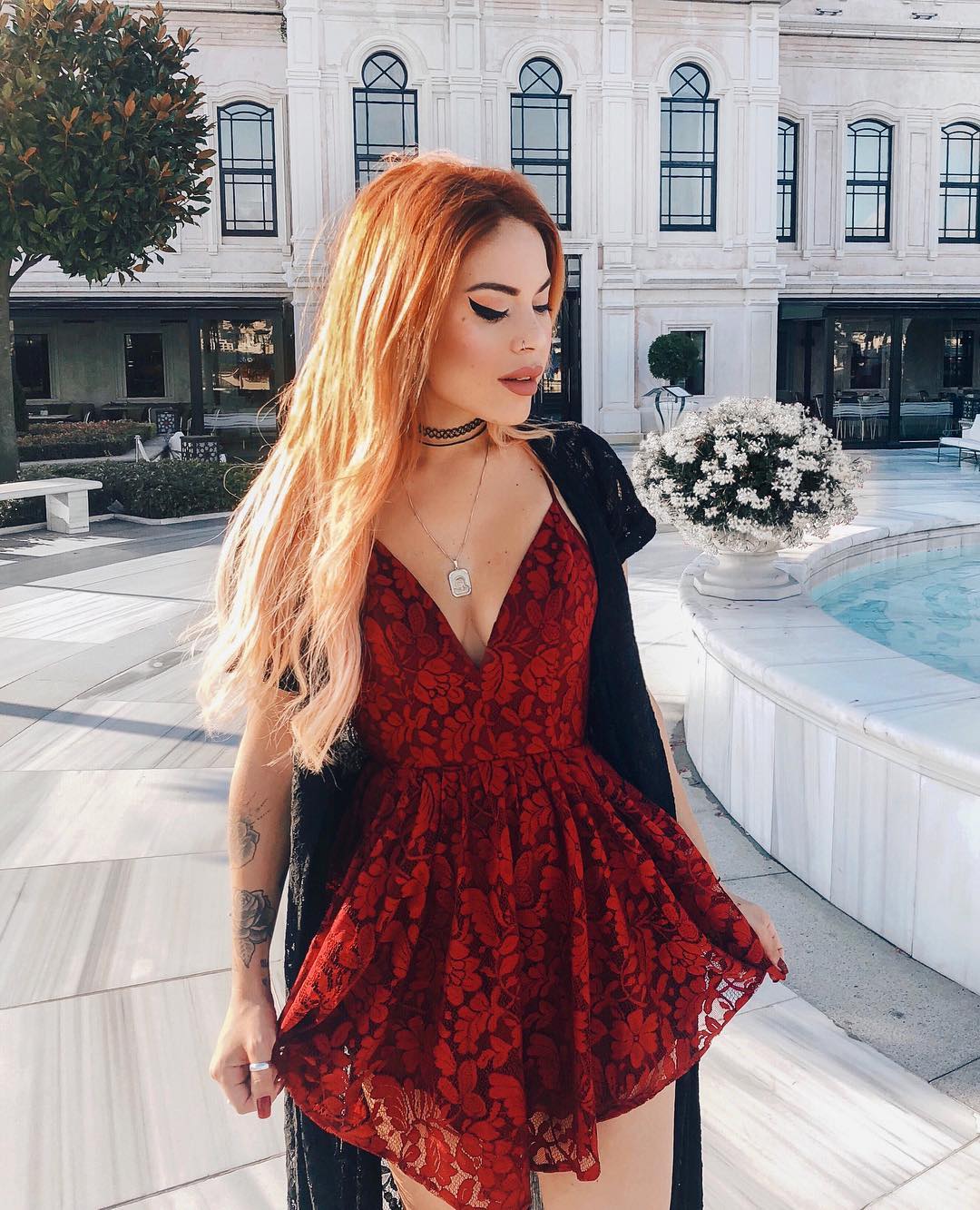 Frauen tragen normalerweise mindestens ein Stück schwarze Kleidung, aber wir empfehlen, Erwartungen zu unterdrücken und sich für ein Rot zu entscheiden.