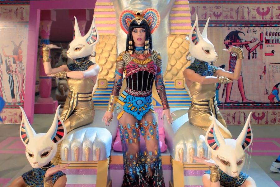 Katy Perry repräsentierte Cleopatra nicht in einem Film, sondern kleidete sich in ihrem Videoclip 2013 für dunkle Pferdusik an. Kenntnis von Katy Perrys Liebe beim Tragen von Wohnfarben und einzigartigen Kleidung - Dieser Videoclip bietet eigentlich einige lustige Visuals an. Es war sicherlich eine einzigartige und modernisierte Version von Cleopatra, aber der Punkt ist derselbe: Es ist bis heute ein relevantes Symbol.