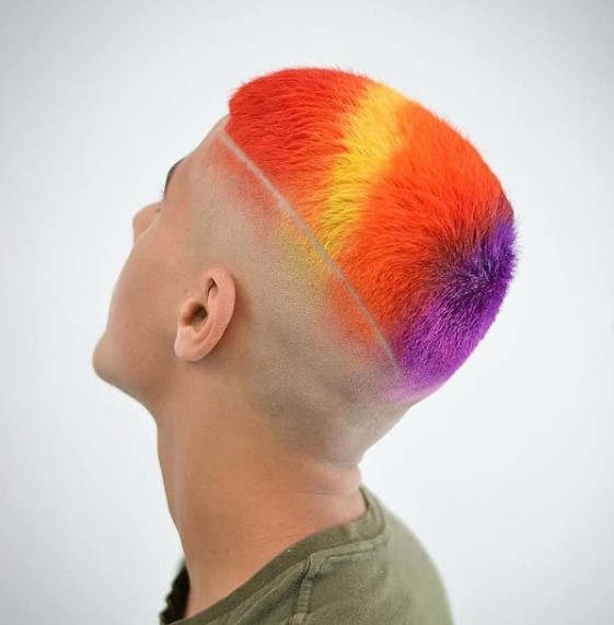 Es gibt Menschen, die ein buntes Haar wünschen, um die Lebendigkeit auszudrücken, die dieser Stil bieten kann. Wenn dies Ihr Fall ist, finden Sie in diesem Beispiel von @ UnitedBars.spain, das drei gut lebendige Farben in einem soliden degrady kombiniert. Der Schnitt hilft auch, den Look abzuschließen.