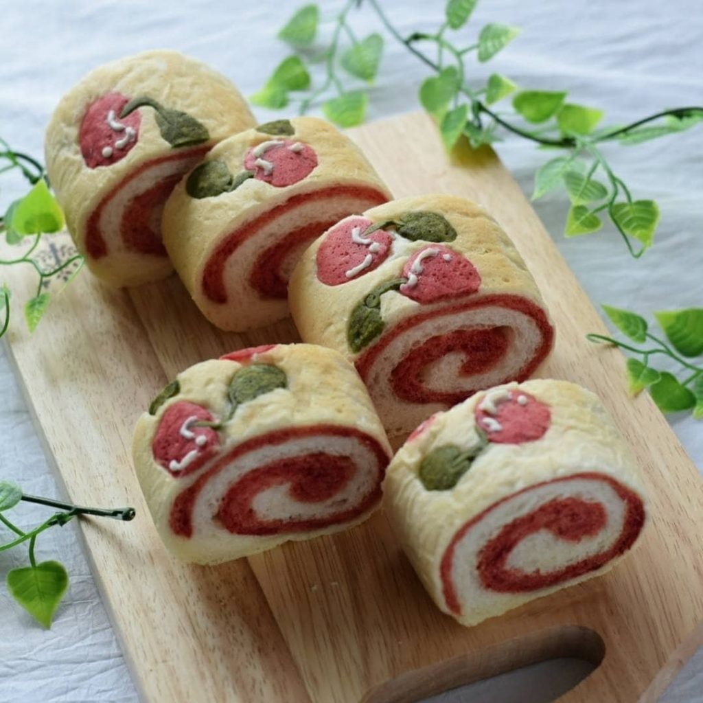 Zu ihren letzten Kreationen gehören ein rundes Kirschbrot, das mit Kirschmarmelade gebacken und mit bezauberndbaren, saftigen und roten Kirschen verziert ist.