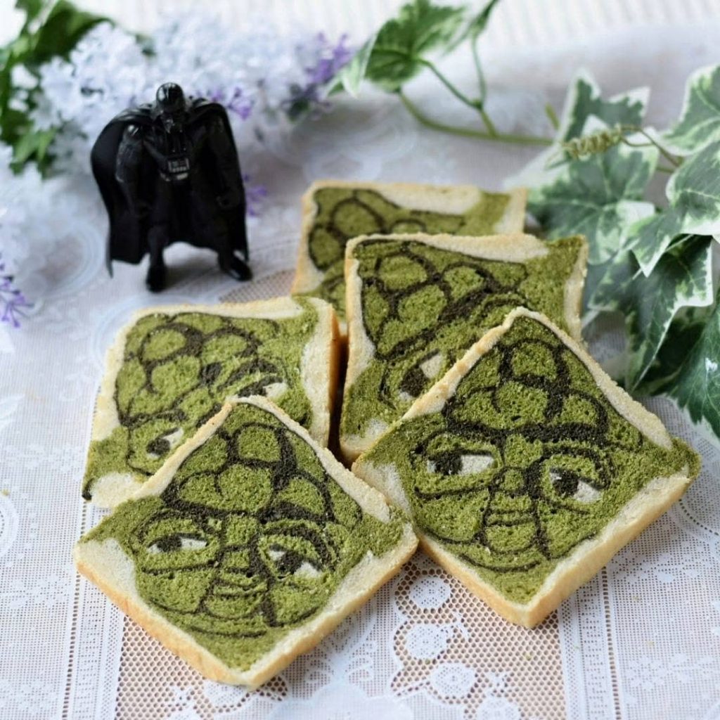 Für Star Wars-Fans in Ihrem Leben ist hier ein Yoda-Brot. Die brillante Farbe wurde vom Spinatpulver gegeben. Wahrscheinlich der beste Weg, Gemüse zu verwenden.