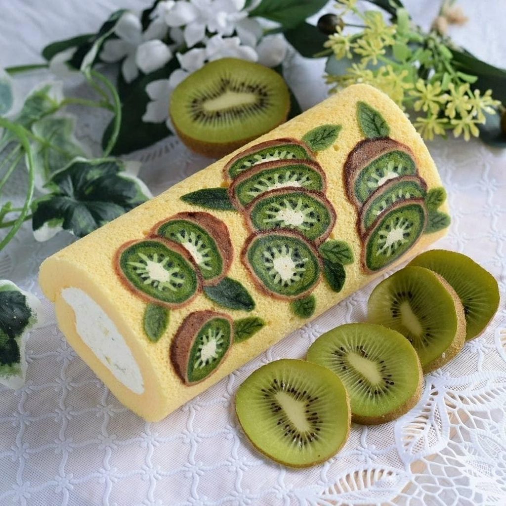 Andere Kreationen umfassen Kiwi-Brot, das von außen mit niedlichen Kiwi verziert ist. Wir sehen hier ein Thema und wir haben uns in sie verliebt.