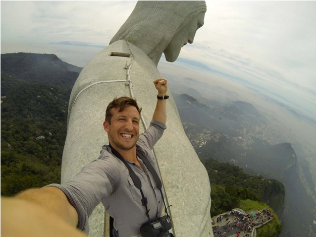 Lee Thompson möchte ein abenteuerlicheres "selfie" -Shotel als eine Belohnung. Er beschloss plötzlich, die Retter-Statue in Rio de Janeiro zu erklimmen, um das erste "Selfie" -Pharo mit diesem berühmten Wahrzeichen aufzunehmen.