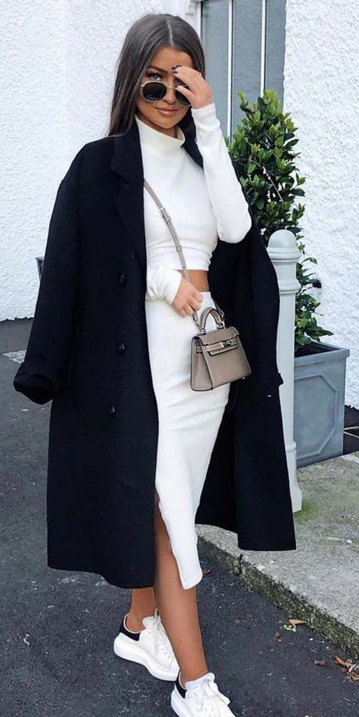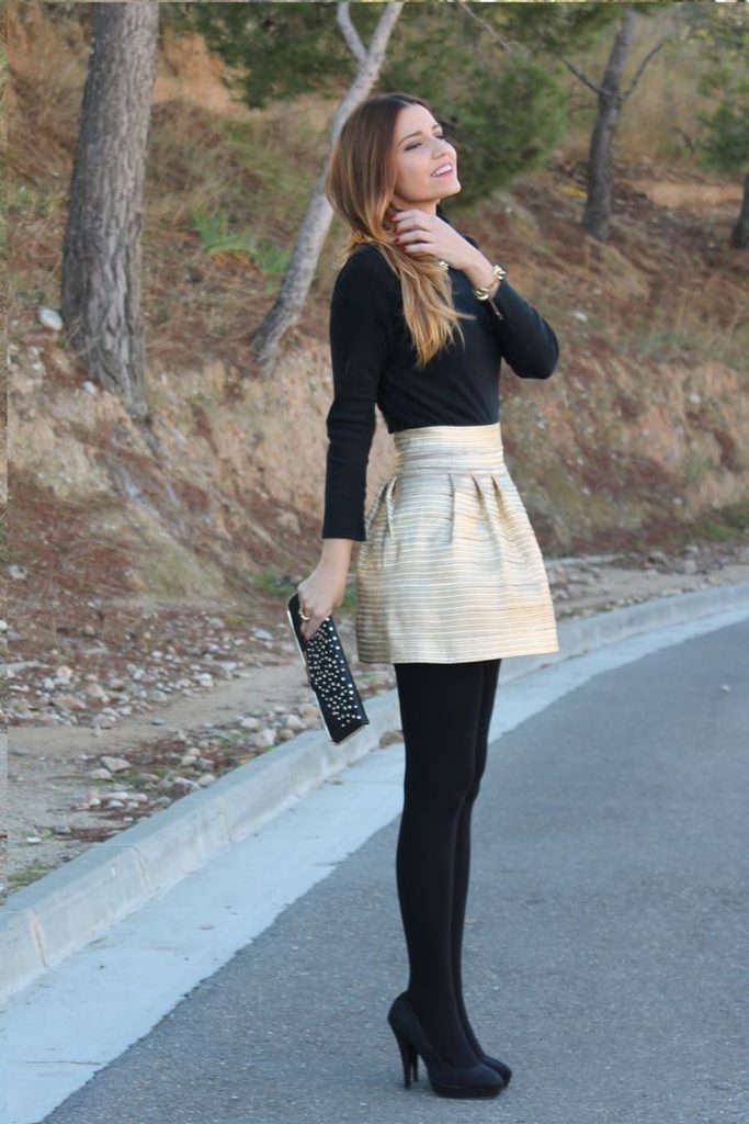 1. Dies ist ein Outfit, das sowohl Büro-Parteien und leichte Cocktails paßt. Die schwarzen Bündel Hosen kommen mit einer Nadel geschwollenen Rock, der immer eine richtige Kombination ist. Sie können auch mit einer schwarzen langen Hülse tragen die Taille der Kurve zu betonen und Harmonie mit engen Hosen zu schaffen. Wir sind sehr in Kombination dieses Outfit mit schwarzen High Heels wie ihre Arbeit im folgenden Bild interessiert.