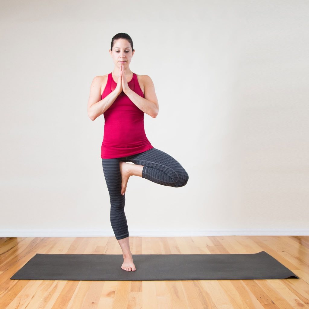 Wenn Sie Ihren Körper verbessern möchten, indem Sie ein gesünderes Body Center tun, bringen Sie die Baumbewegung in Ihre tägliche Übung. Mit dieser Bewegung müssen Sie Ihren Körper auf ein Bein wechseln, heben und das Knie auf der anderen Seite halten, und drücken Sie dann die Füße in den inneren Oberschenkel des linken Beins in einem geneigten Winkel.