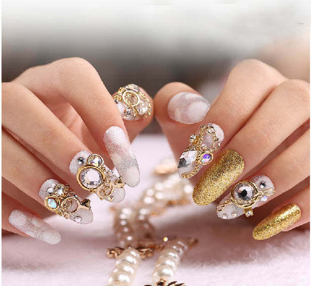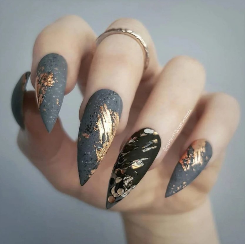 Kommen Sie zurück in die Gegenwart und begrüßen Sie den zukünftigen Trend mit metallfarbenen Nägeln - natürlich ist die beliebteste Farbe Gold und Silber. Diese Farbe wurde mit langen Nägeln konsolidiert, da lange Nägel leichter fangen werden, und wenn der kurze Nagel ziemlich rau aussieht. Dieser Stil macht Sie wie den Roboter in Ex-Machina und kann mit vielen Arten von Kleidern koordinieren. Malen Sie es auf einem Nagel, bevor Sie Angst vor übermäßiger und unwirklicher Farbe haben.