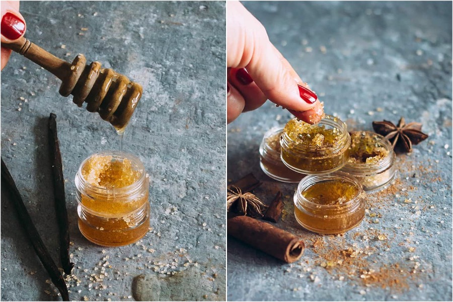 Dies ist eine großartige Idee für diejenigen, die würziges Aroma mögen und Liebe fallen. Stellen Sie sich vor, wenn eine Peel-Fläschchen für die aromatischen Lippen von Zimt-Latte-Wasser attraktiv sein wird. Mischen Sie nur zwei Esslöffel braunem Zucker mit halber Esslöffel Olivenöl und Halb-Esslöffel-Honig - also haben Sie den grundlegenden Teil fertiggestellt. Fügen Sie nun etwa ein Zimt hinzu, um Ihre fertigen Produkte zu verbessern. Diese Formel hat sowohl mit der Haut abgegeben und mit der Haut abgegeben, so dass Sie nach der Einnahme einen Schrägstrich von etwas stechendem und prallen lassen.