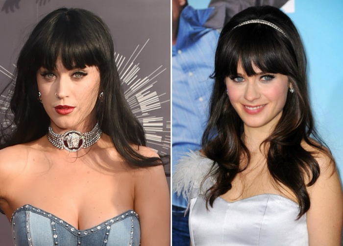 Zooey Deschanel (1980) ist ein amerikanischer Schauspieler, Modell, Sänger und amerikanischer Musiker. Sie ist ein talentierter Schauspieler, der durch eine Serie wie "Neues Mädchen" und "500 Tage im Sommer" bekannt ist. Katheryn Elizabeth Hudson oder oft als Katy Perry (1984) bekannt, ist ein berühmter amerikanischer Sänger und Musiker. Sie besitzt seit vielen Jahren eine bemerkenswerte Leistung auf den Billboard-Rankings und ist ein weiblicher Künstler-Stoßfänger im internationalen Musikdorf wie Guinness World Records, American Music Awards, Brit Awards, Juno Awards usw. Nicht nur das gleiche in der Erscheinung, diese beiden Weibliche Sterne sind im Kleidungsstil sowie Make-up gleich. Sogar Katy Perry lud Zooey Deschanel ein, in dem jüngsten MV aufzutreten, namens "nicht das Ende der Welt", um anstelle von sich in den Charakter zu inkarnieren.