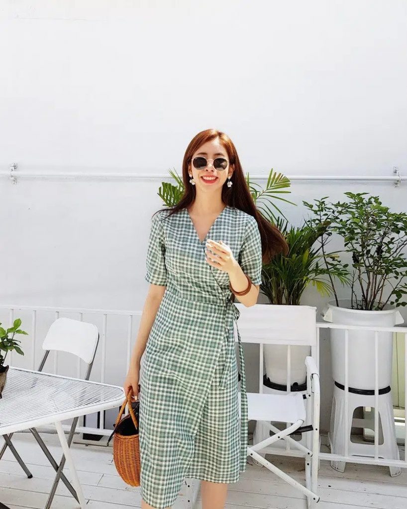 Caro-Muster werden in jedem Kleid immer als "klassische" Motive angesehen und niemals modedet. Der Modeart, der Kleid / Kleidungsmuster ist nicht nur, dass Frauen Frauen jünger werden, sanfter, sanfterer Tag.