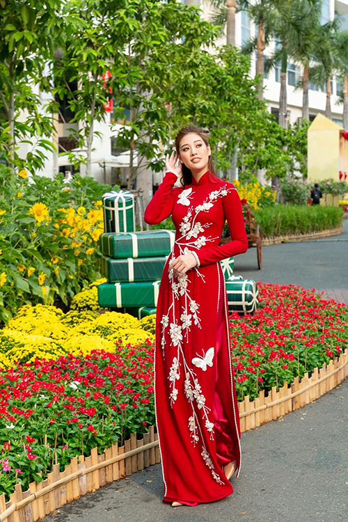 Mit einer Höhe von 1m75, die Anzahl von drei Runden 83-60-90 cm, Miss Universe Vietnam 2019 Nguyen Tran Khanh Van (26 Jahre alt) ist einer der prominentesten Kleider. Sie war auch ein Botschafter in dem Vietnam Ao Dai Festival im Jahr 2020. Während des neuen Jahres des neuen Jahres 2021, sie bei einem traditionellen langen Kleid mit einem bunten Büffel Motiven auf einem gelben Hintergrund sahen, Köpfe und Töne Hoffnung eines glücklichen, voll Leben im neuen Jahr. Außerdem war sie auch prominent in den roten Kleidern, Blumenmotive und Schmetterlinge herumlaufen.