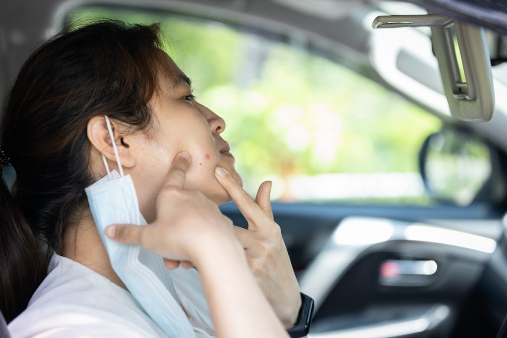 Im Zusammenhang mit der Covid-19-Epidemie wird das Tragen einer Maske mehr notwendig, auch wenn die Menschen in öffentlichen Räumen im Haus arbeiten. Allerdings tragen Masken werden den ganzen Tag machen die Haut verwechselt werden, auch Akne verursachen.