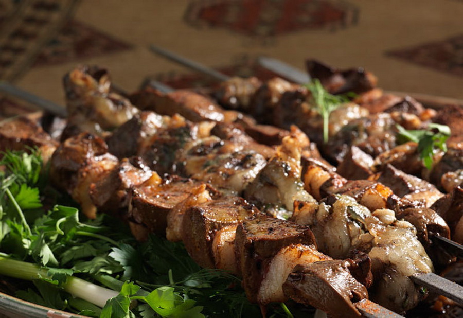 Wir sind zuversichtlich, dass Spiegeln der Rindfleischer mit Speck für viele eine Offenbarung sein werden. Wenn es müde von banalen Grillrezepten, diversifizieren Sie Ihr Urlaubsmenü dieses Gericht. Wenn Sie die Frage erwarten, antworten Sie einfach: Fett ist notwendig, um eine saftige ziemlich solide Leber zu erweichen und zu machen. Servieren Sie einem Kebab mit viel Grün und frischem Gemüse.