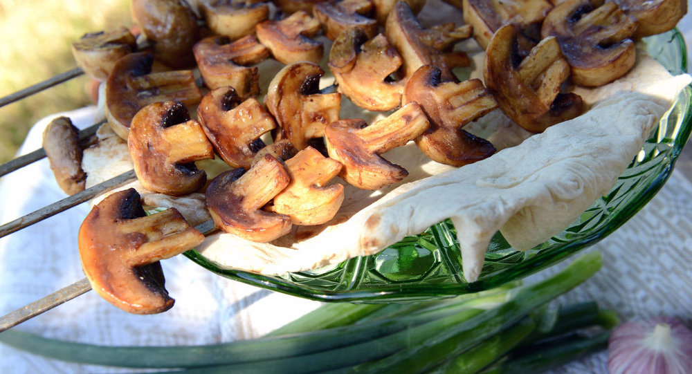 Ein weiterer Vegetarier-Diät-Rezept-Grill für den Maiurlaub - Spieße der Pilze. Es ist lecker, schnell vorzubereiten und eine vernachlässigbare Menge an Kalorien enthält. Kommen Sie mit einem kreativen Pitch - und Ihr Teller fährt aus dem Tisch, ist nicht schlechter als die Spieße von Fleisch.