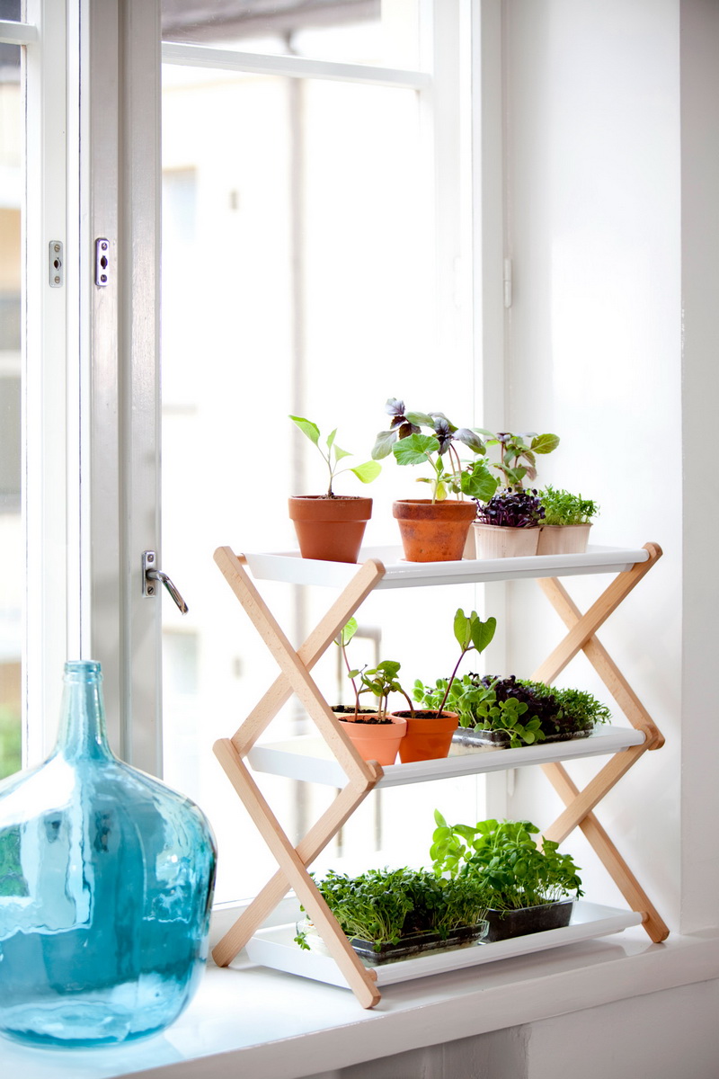 Wenn Sie eine Menge von Töpfen oder Behältern mit Grün haben wollen, obzavedites stilvolle Dingsbums und nicht die Fensterbank voll stopfen. Und Sie können die Pflanzen in mehreren Ebenen setzen. Sind Sie sicher, dass Sie die Kompaktheit des Gebäudes zu schätzen wissen.