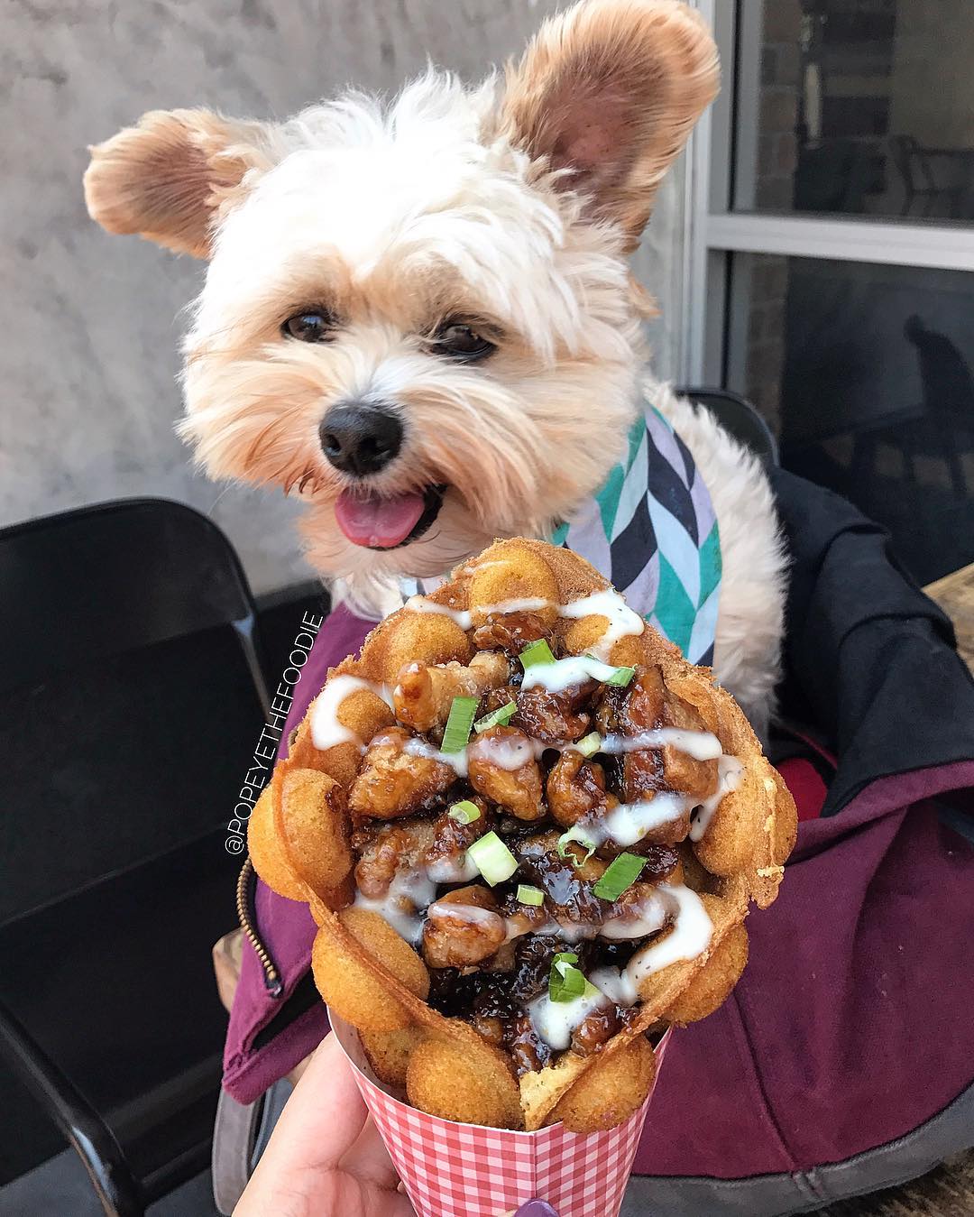 Papst Zuvor war es ein obdachloser Hund, während er nicht eine süße Frau hat abholen, gern Essen zu fotografieren. Jetzt wurde er ihr Hauptmodell.