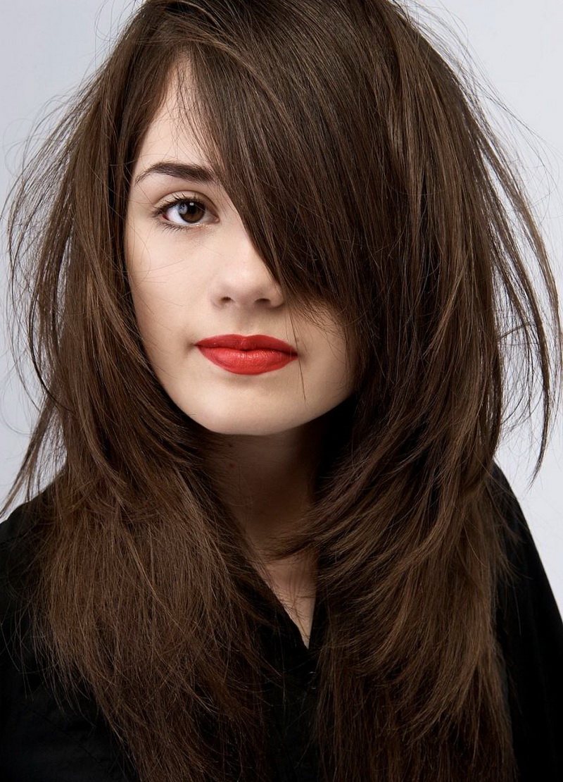 Mode in diesem Jahr für lange Haarstreifen mit dickem und langen Pony. Stylisten sagen, dass es besser ist, keine flachen Pony zu bauen, sondern zur Seite und dreieckig zu machen. Daher ist es viel einfacher, damit zusammenzuarbeiten, die Wirkung von Zweig und Wellpappe anzuwenden, was in dieser Saison wieder in Mode brach. Die zweite Version des Ponners für lange Haare ist ein kurzer Knall, der Gesichtsmerkmale öffnet und betont. In diesem Fall müssen Sie jedoch mit einem Spezialisten konsultieren, da der kurze Knall nicht jeder ist.