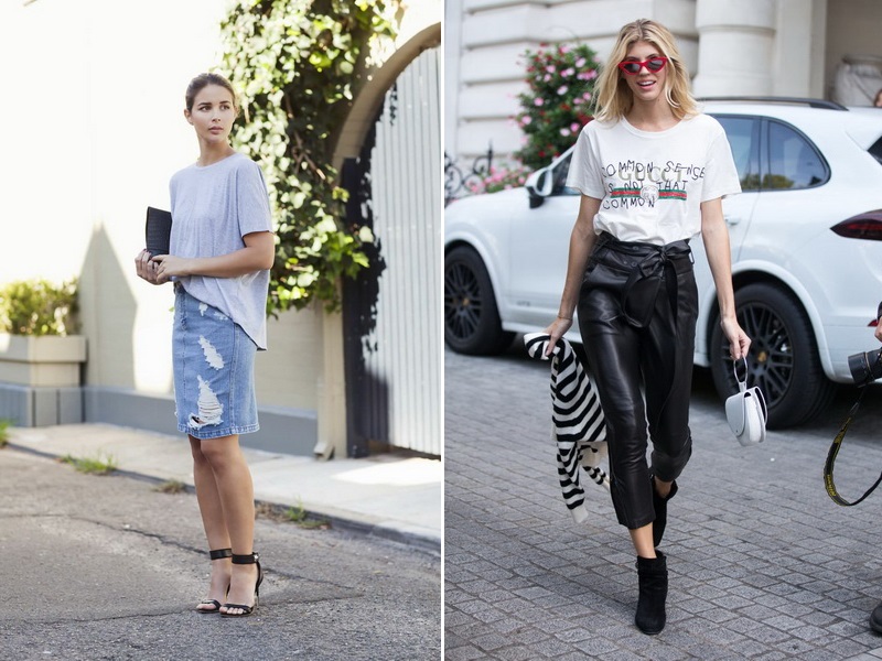In der Kleiderschrank jedes Mädchens sollte grundlegende T-Shirts sein. Weiß, Schwarz oder Grau - Wählen Sie für Ihren Geschmack (besser, wenn alle Farben sofort sind, da sie ziemlich schnell abgenutzt sind). Tragen Sie sie unter Jeans mit einer Jacke und Ihren Lieblingsbooten - und Sie werden feststellen, dass Sie Blicke zu bewundern sind.