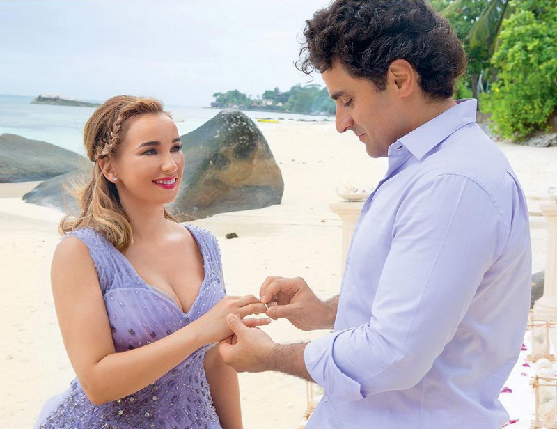 Bei der Hochzeit traf sich die Freundin ihren Schicksal Sänger Sati Kazanova. Es war der italienische Fotograf Stefano Tiozzo. Der Sänger, der zuvor eine herrliche Feier wollte, feierte schließlich zwei sehr üppige Hochzeiten: in Italien und dem Kaukasus.