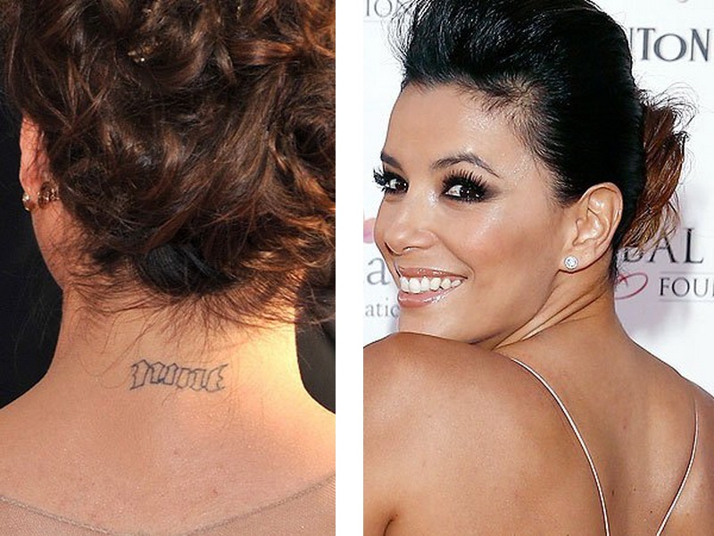 Star of TV-Serie "Verzweifelte Hausfrauen" Eva Longoria hat auch einen seiner Taturirovku gewechselt. Die Schauspielerin nach einer harten Scheidung aus ihrem Ehemann Tony Parker entfernte das Tattoo an seinem Hals: Es war die Nummer 9 im Erinnerung an das Datum ihrer Hochzeit. Nun, Eva Longoria Hals fließt die Inschrift "Ich sehe dich nie wieder."