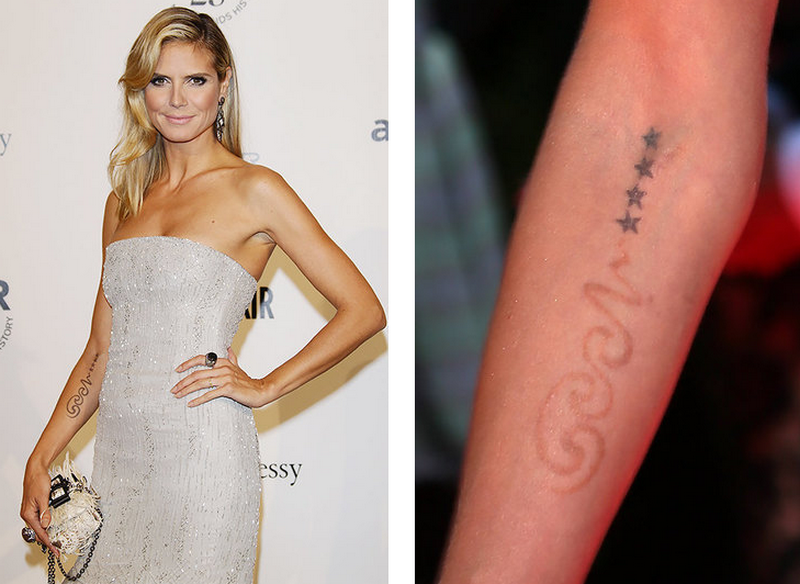 Das berühmte Modell Heidi Klum mit einem Laser, um den Namen der ehemaligen Ehefrau der Kraft zu entfernen, der auf ihrem Arm stilltet wurde. Es ist unwahrscheinlich, dass es für einen neuen Freund entschieden wird.
