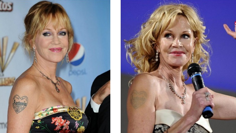 Scheidung ist über eine lange Liebesgeschichte von Melanie Griffith und Antonio Banderas. Infolgedessen beschloss Melanie Griffith, ein Tattoo mit dem Namen eines ehemaligen Liebhabers loszuwerden, der ihre Schulter seit vielen Jahren verschüttete.