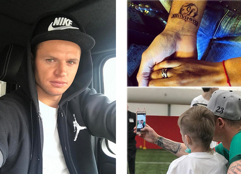 Dmitry Tarasov, Russischer Fußballer und Ex-Ehemann von Olga Buzov, entschied, dass er ihn an die gescheiterte Beziehung mit dem Star von "House-2" erinnern sollte. Nun in Platz Tätowierung mit dem Datum ihrer Hochzeit, Dmitry Tarasov verpackte Sanduhr mit dem Satz in Lateinisch, was bedeutet, dass "Zeit tötet, tötet alles."