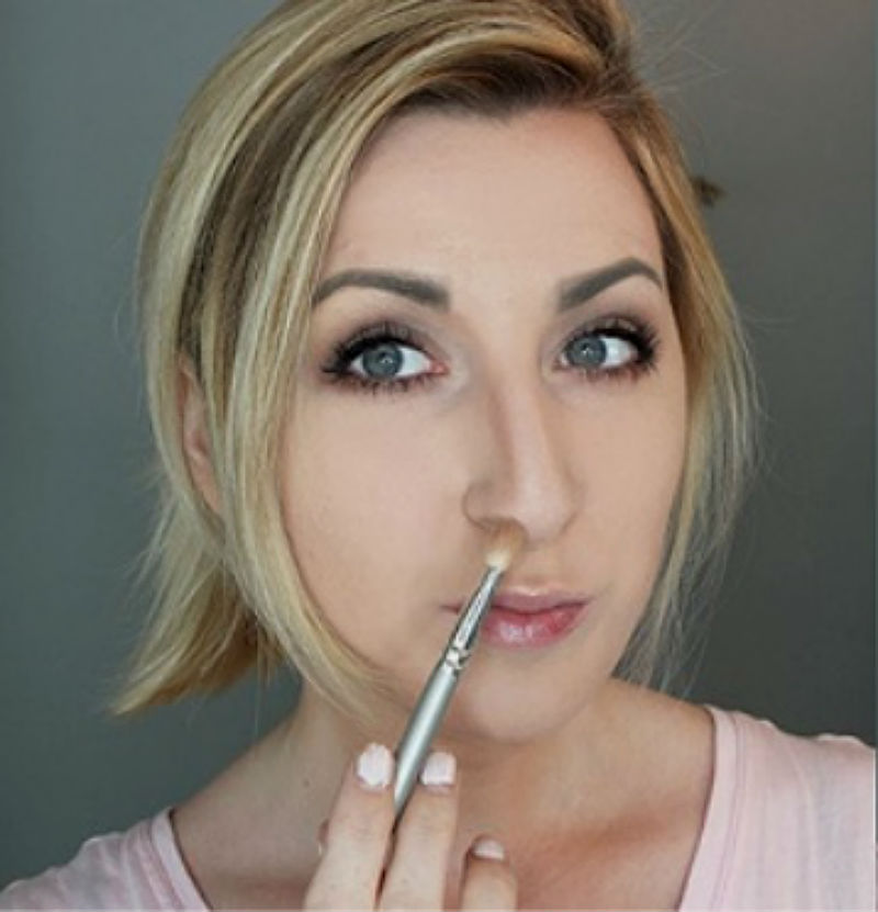 Um visuell zu reduzieren Sie Ihre Nase, benötigen Sie ein Pulver / Tank pro 1-2 Töne leichter und Pulver / Tank für 1-2 Tonnen dunkler. Um die Form anpassen, gelten auf den Flügeln der Nase einen dunklen Ton, und auf der Rückseite - einen helleren Ton. wächst in sorgfältig, so dass die Grenzen zwischen den Tönen nicht sichtbar sind. Alles ist einfach, und keine rhinoplasty müssen.