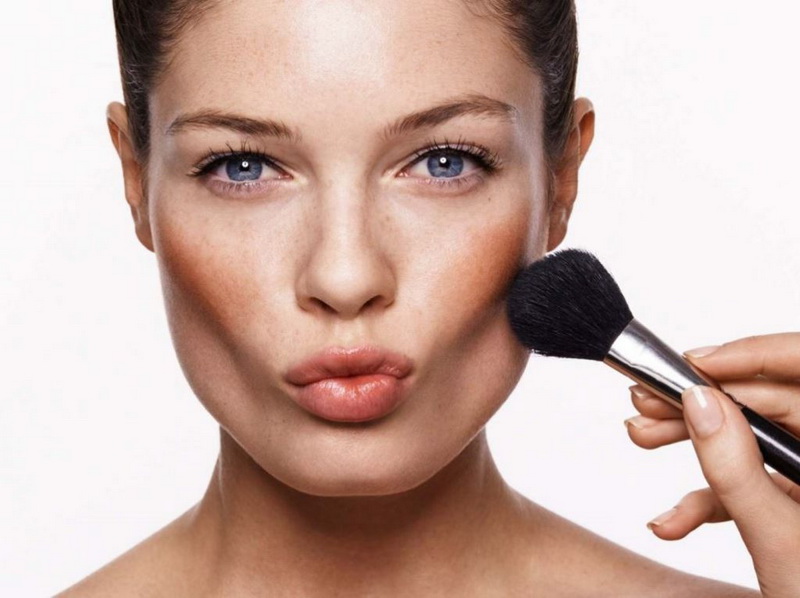 Damit Sie hohe und präzise Wangenknochen haben, wie Angelina Jolie und Megan Fox, benötigen Sie einen Bronzer oder eine feuchte Farbe sowie eine Bürste mit einer unebenen Kante. Zuerst ziehen die Wangen, als wenn Aussprechen den Buchstaben „O“ und eine fast unsichtbare schräge Linie unter der resultierenden Wange ziehen. Lange Swipe eine flache Linie zum Tempel bis zum Kinn. Dann leicht die Linie verdunkeln und gut wachsen. Sichern Sie das Ergebnis mit einem Textmarker oder Schimmer, ist es notwendig, es über die frechen anzuwenden. Die wichtigste Regel: darke alles, dass es notwendig ist, zu reduzieren, und starten Sie, was Sie erhöhen müssen.