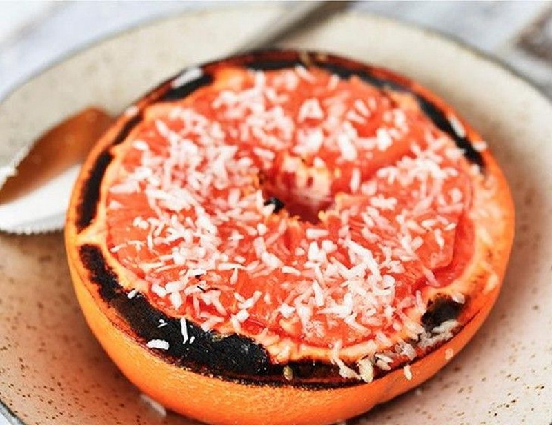 1. Gebratene Grapefruit mit Kokos-Chips (120 Kalorien)