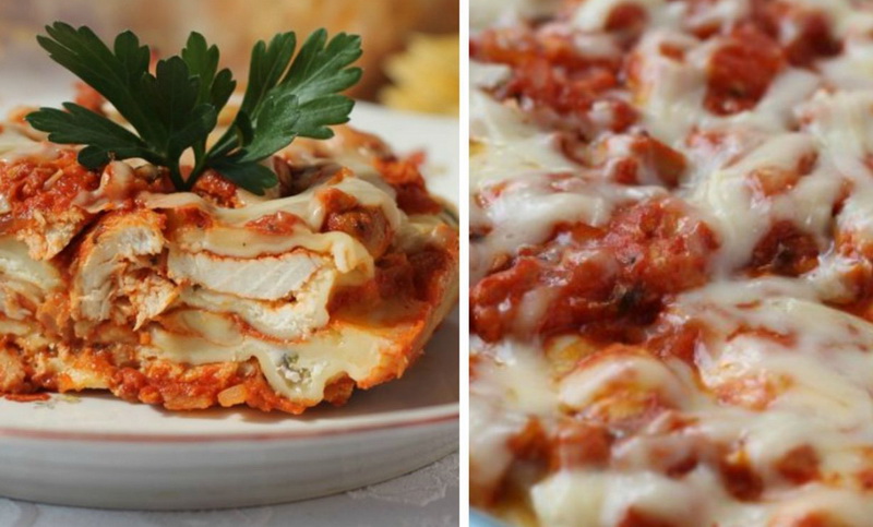 Lazagna ist ein sehr hochkalorische Gericht, aber es gibt einen Weg ein Lieblingsgericht einfacher und nützlich zu machen. Ersetzen Sie einfach Hackfleisch und Kalorien Sauce auf eine sanfte Hähnchenbrust und Hüttenkäse mit Knoblauch. Es stellt sich heraus unglaublich lecker!