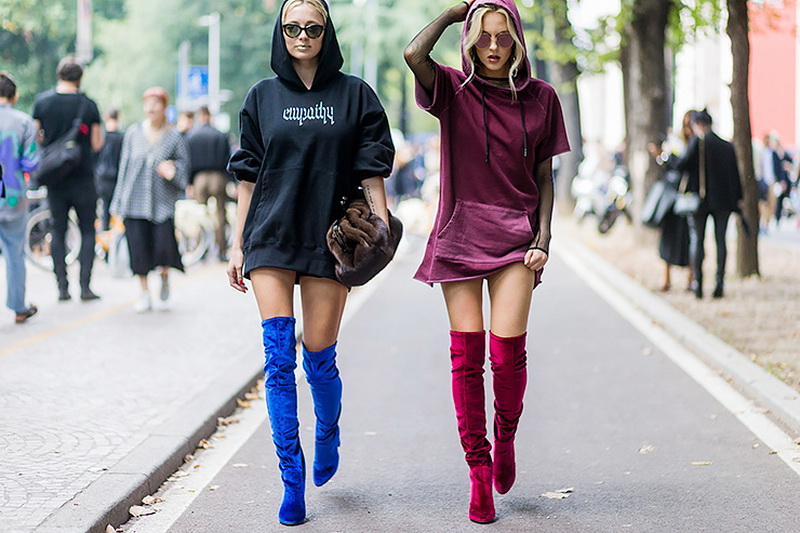 Das kräftige Bild und der entsprechende Eindruck werden dazu beitragen, Kapuzen in Kombination mit Stiefeln herzustellen. Sie haben auf jeden Fall Sterne in solchen Kleidern gesehen, was bedeutet, dass Sie auf jeden Fall nicht mit trendiger Weise verlieren. Denken Sie jedoch daran, dass Sie sich in einem solchen Berührung zuversichtlich fühlen sollten, sonst verschwindet die ganze Magie des Bildes.