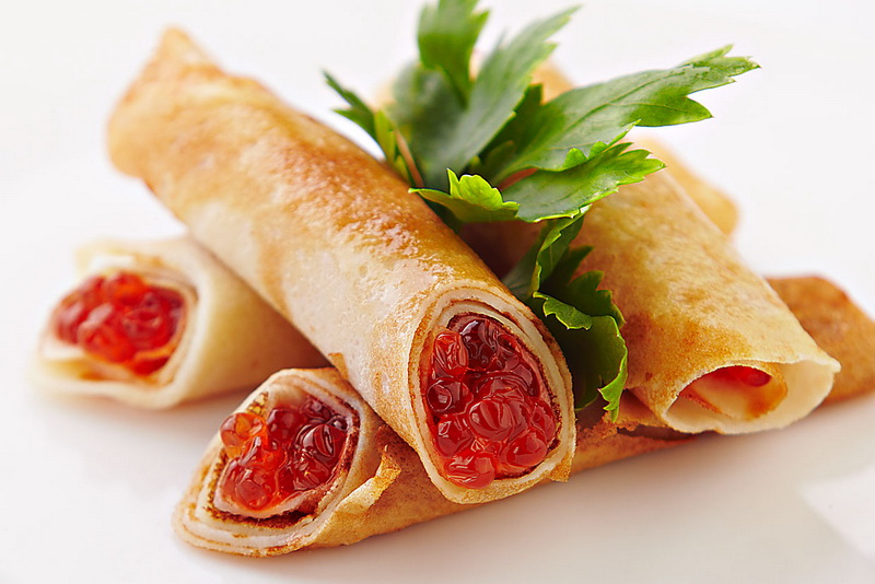 Viele rufen diese Version der Füllung an - das Royal, aber was kannst du für die Traditionen des geliebten Volksfeiertags tun? Um den Futter zu diversifizieren, können Sie der Teigpfannkuchen-Tinte Karakatitsa hinzufügen, und Ihre Pfannkuchen sehen sehr stilvoll aus.