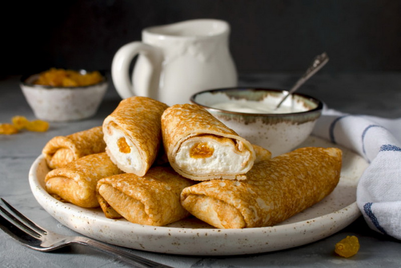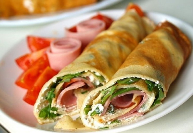 Pfannkuchen mit einer solchen Füllung sind sehr sanft. Ihre Gäste werden auf jeden Fall zufrieden sein.
