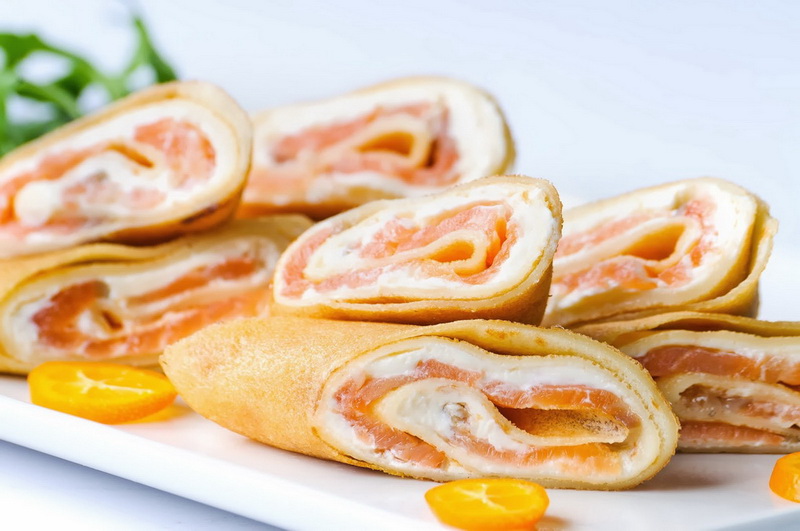 Dies ist einer der leckersten und fettigen Rezepte für Pfannkuchen auf Karneval. Vergiss nicht vergessen, Zitrone hinzuzufügen, um den Geschmack von rotem Fisch zu verbessern.